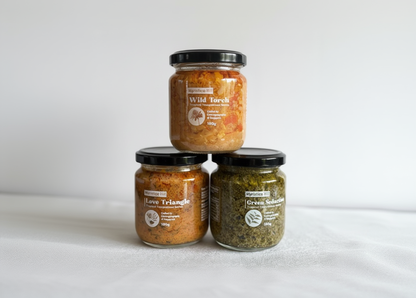 This journey led us to create Myristica Hill, our line of Botanical Teas and Tropical Temptations, our small-batch sauces. Each blend and jar is inspired by the land itself: clean ingredients, tropical botanicals, and flavours rooted firmly in Singapore’s climate and culture.